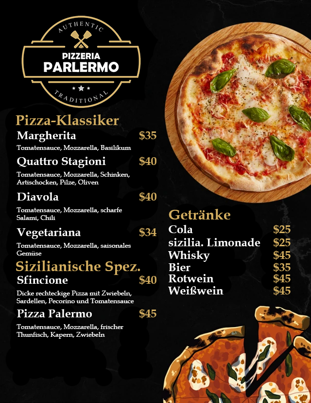 Pizza deiner Wahl + Softdrink (Rabattangebot 1x in der Woche Mittwochs): Wähle eine beliebige Pizza von unserer Karte und kombiniere sie mit einem Softdrink deiner Wahl. Sonderpreis:$50 (anstatt bis zu $75)